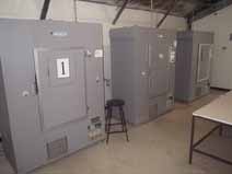 Growth CabinetsThere are fourteen growth cabinets (Thermoline), half are 1500mm x 1800mm x 900 mm, the other half being 1100mm x 1200mm x 600 mm. Each has temperature control and carbon dioxide enrichment from remote cylinders. Growth cabinet conditions are also logged continuously. Cabinets are in a building adjacent to the glasshouses with water and working space.